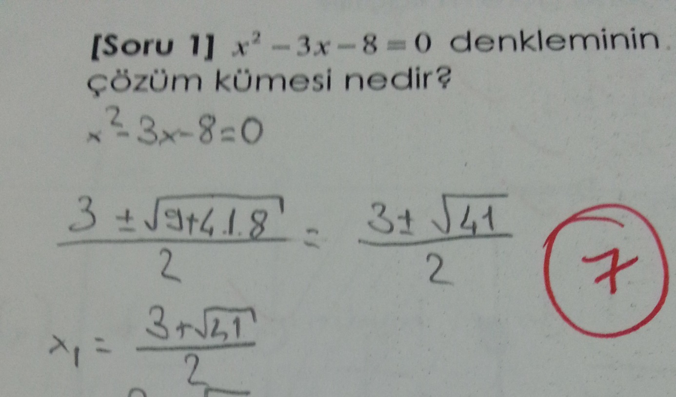 Öğrencinin bu soru olgusunu tam manasıyla algılayıp yorumlayabilmesiyle bunları sentezlemesi ciddi çalışma gerektirmektedir. Birinci dereceden bir bilinmeyen, çarpanlara ayırma, kareköklü sayılar, ikinci derece denklem köklerin incelenmesi gibi kavramlara hakim olmasıyla mümkün görünmektedir. Bu soruya verilen yanıtı aşağıda paylaşalım: